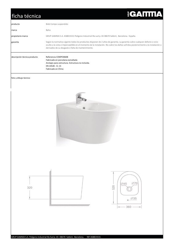 El bidet de la sèrie COMPO és elegant i senzill. Amb un disseny suspès per a aportar-te més espai i amplitud. Crestallera i amb la tecnologia <i>nano Glaze</i> que tanca els porus per a evitar que els bacteris i la brutícia s'adhereixin amb facilitat.