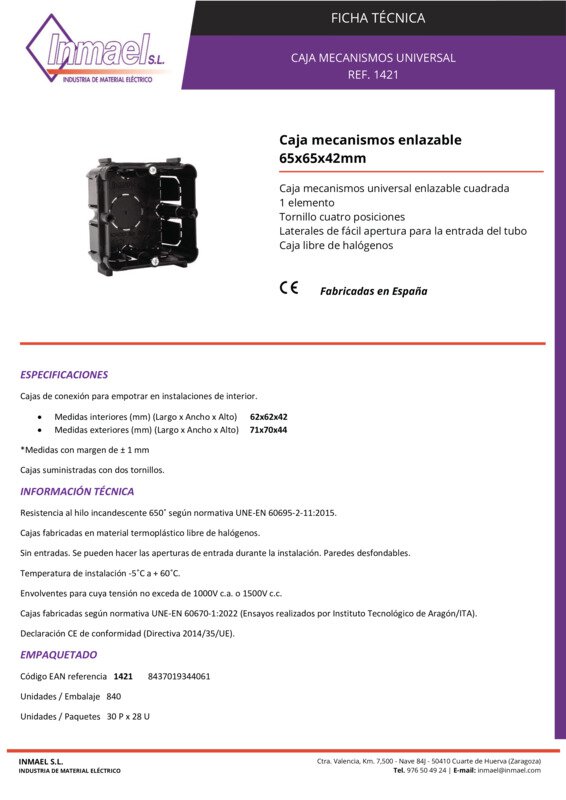 Caixetin mecanismes enllaçable universal 65X65X42