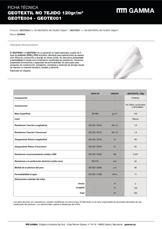 Rotllo geotèxtil polièster 120gr/M2 1x100m