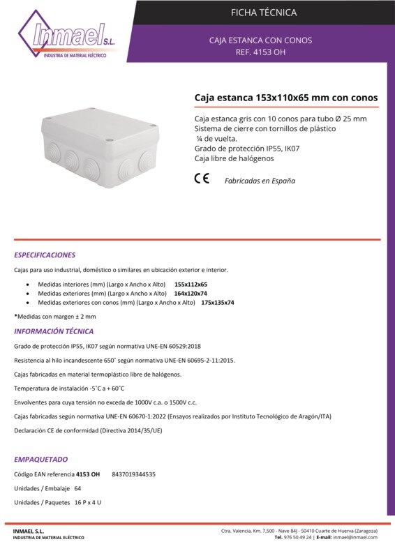 Ud. caja estanca con conos c/tornillos 153x110x65
