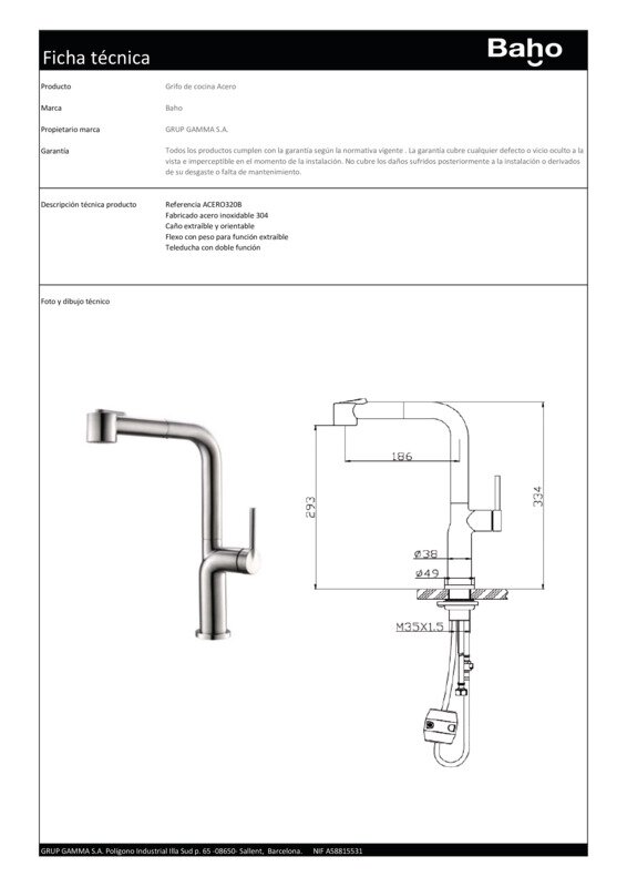 Completa tu cocina con el moderno y funcional grifo ACERO de Baho, con caño orientable y extraíble para que tus tareas diarias de limpieza y cocina sean más cómodas y sencillas. Además, el grifo ACERO, que incluye ducha de 2 posiciones para que puedas elegir la más conveniente en cada momento, te ayudará a preservar el medio ambiente y a cuidar de tu salud, ya que está fabricado en acero 304 de excelente calidad y no incorpora ningún baño de otros materiales, garantizándote la ausencia de residuos de plomo u otros tóxicos en el agua. Con un diseño innovador y profesional que le dará un carácter único a tu cocina, este grifo en acabado mate tiene una medida total de 33,4 cm y un flexo de 1,5 metros.