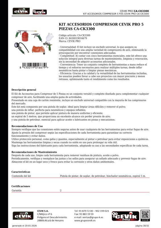 Kit Accesorios Compresor Cevik Pro 5 piezas