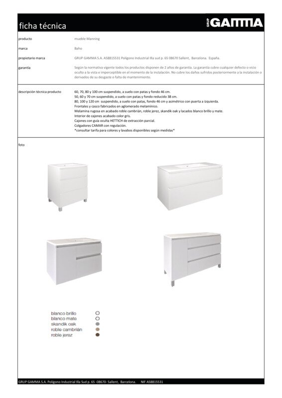 El mueble de baño MANNING de Baho con 3 cajones es ideal si dispones de un espacio reducido, ya que solo mide 60 cm de ancho y tiene fondo reducido de 38 cm. Le aportará luminosidad a tu baño ya que está acabado en blanco brillante con un tratamiento que lo hace resistente a la humedad. El mueble se instala a suelo e incorpora las patas, lo que no hace necesario agujerear la pared y permite aprovechar la altura para ofrecer mayor capacidad de almacenaje. Cuanto a los cajones, de extracción parcial, disponen de guía oculta y bisagras de cierre amortiguado y tienen los interiores en color gris. Las medidas completas del mueble son 60x85x45 cm y es aconsejable instalarlo con el lavabo CÓDIGO II de Baho