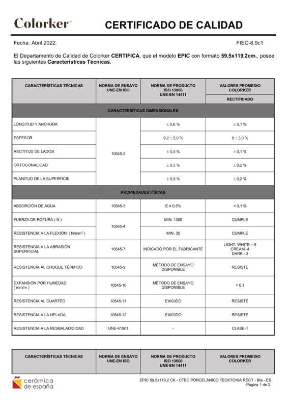Revestimiento Terradecor 59x119 rectificado Epic cream