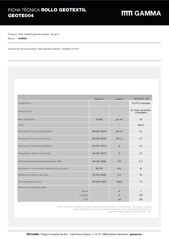 Rollo geotextil poliester 120gr/M2 2x125m