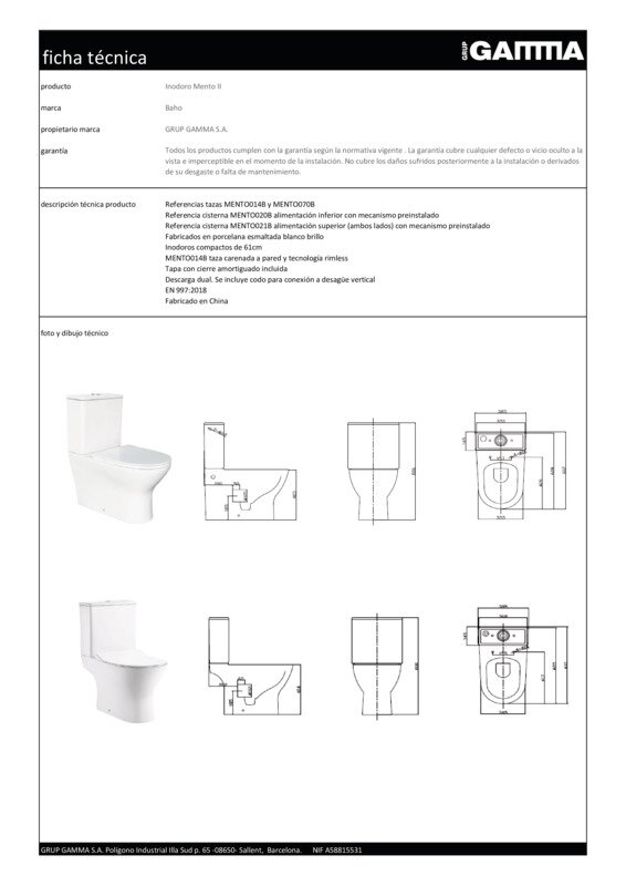 La taza Baho Mento tiene un diseño con formas suaves y redondeadas, sin rincones y de fácil limpieza, lo que actualmente conocemos como tecnología Rimless. Como particularidad, y a diferencia de los inodoros convencionales, el agua no sale de múltiples agujeros hechos en la brida, sino que sale de un solo orificio trasero. Este sistema evita los rincones difíciles de limpiar siendo más higiénico y evita los recodos susceptibles de alojar bacterias.