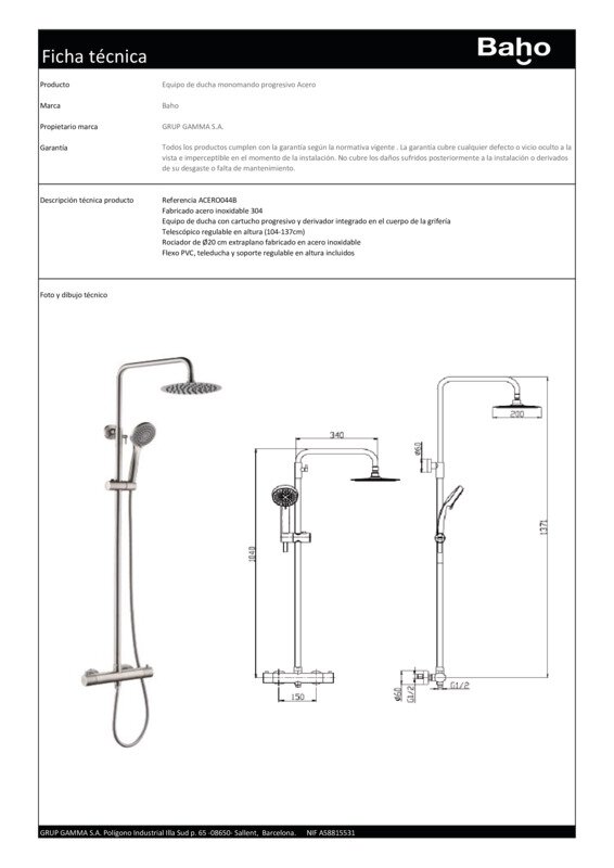 Producto ECO. Equipo de ducha de la serie ACERO fabricado en acero inoxidable y con acabado mate, sin baños de otros materiales, lo que favorece la calidad del agua, la durabilidad del producto y su bajo impacto medioambiental. Incluye rociador redondo de 20cm, cartucho monomando progresivo, flexo, teleducha de 3 posiciones y soporte regulable de 104 a 137cm en altura.